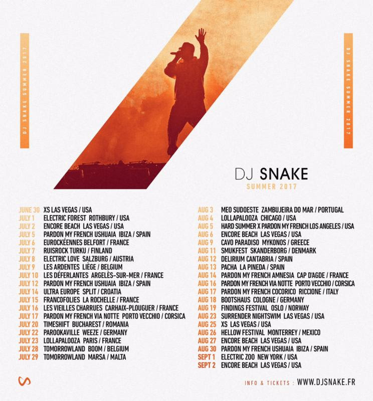 Dj Snake lleva su talento a todas partes del mundo, con este anuncio de su gira de verano. El Dj y Productor frances no perdio tiempo e inicio su tour el pasado 30 de Junio en el XS en las vegas.