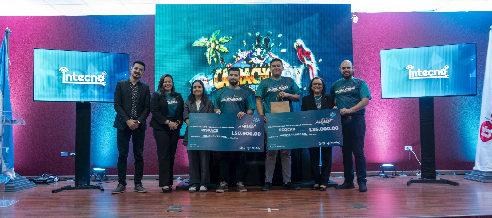Durante el evento de clausura, los emprendedores finalistas de los proyectos Goddale, Catrachopoly, Intecno, Ecocar y Ris-pacs compitieron por los primeros lugares, presentando sus proyectos ante un jurado compuesto por expertos del sector emprendedor y empresarial. Los proyectos finalistas cubrieron diversas áreas de innovación, desde productos sostenibles hasta soluciones tecnológicas diseñadas para mejorar la calidad de vida de personas con retos especiales.