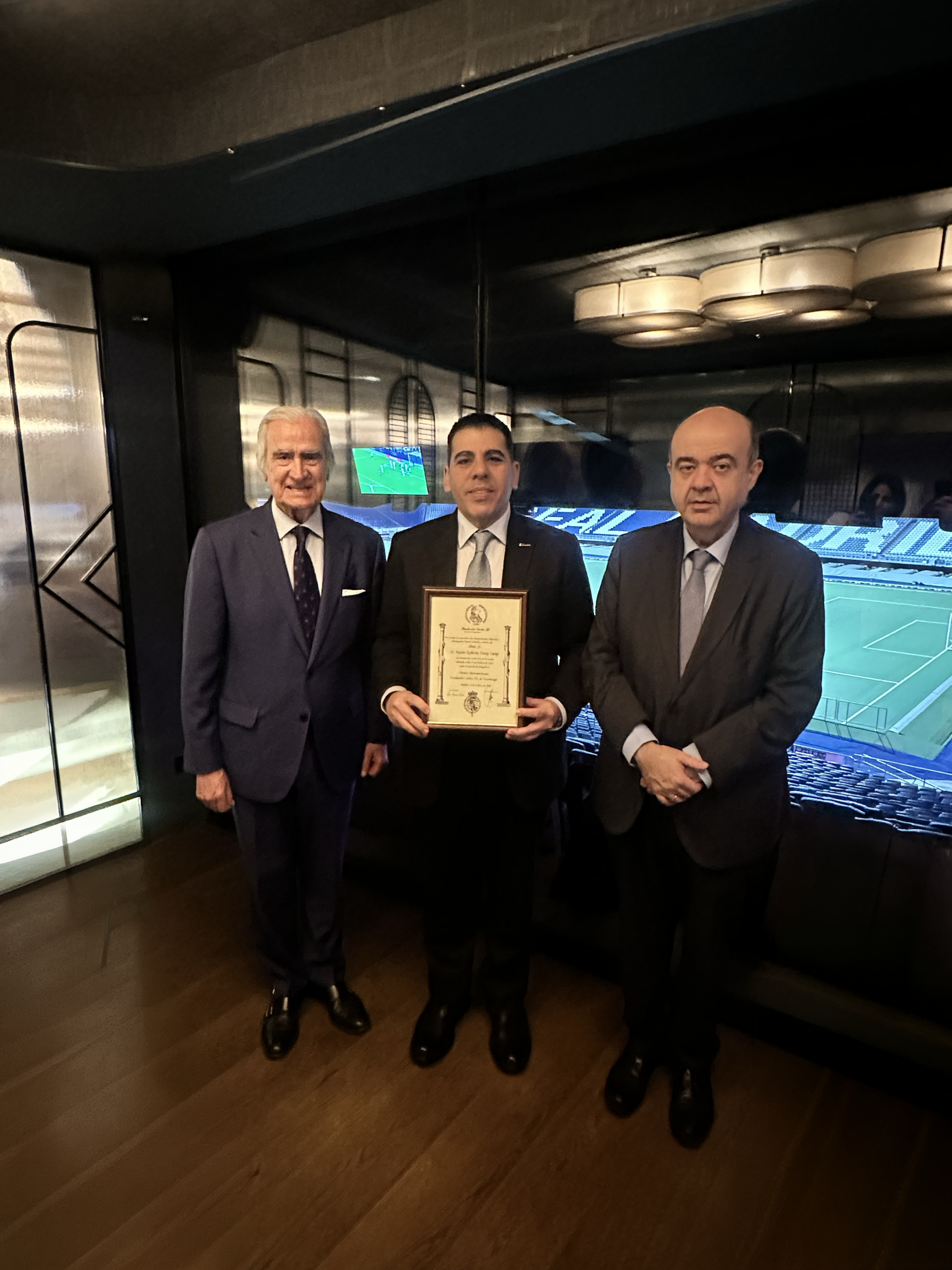 La entrega del reconocimiento se llevó a cabo la noche del 26 de febrero, en uno de los restaurantes emblemáticos del estadio Santiago Bernabéu, en Madrid, acto en el que estuvieron presentes don Carlos Escudero de Burón, presidente de la Fundación Carlos III; Mario Faraj, presidente de la Fundación Diunsa, y su esposa Leyla de Faraj; Julio González Ronco, Director Gerente de la Fundación Real Madrid y Mateo Figueroa Tobón, jefe responsable del área de América de la Fundación Real Madrid.
