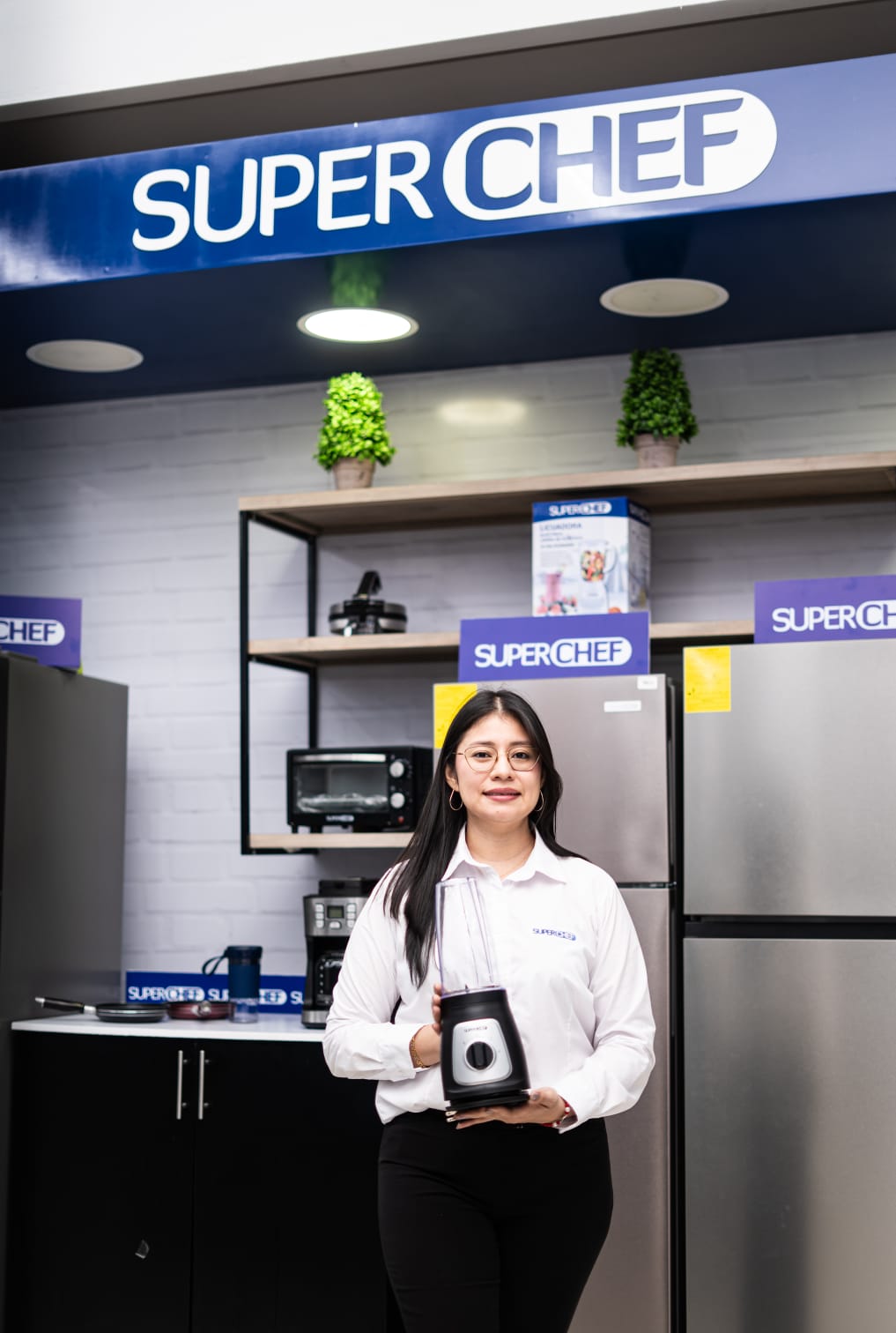 Su portafolio incluye estufas, refrigeradoras, freezers, recámaras, licuadoras, percoladoras y asadores, además de la línea SuperChef Pro-Serie, que incorpora máquinas para cappuccino, licuadoras de alto rendimiento y freidoras de aire, diseñadas para quienes buscan desempeño profesional y mayor versatilidad en la cocina.