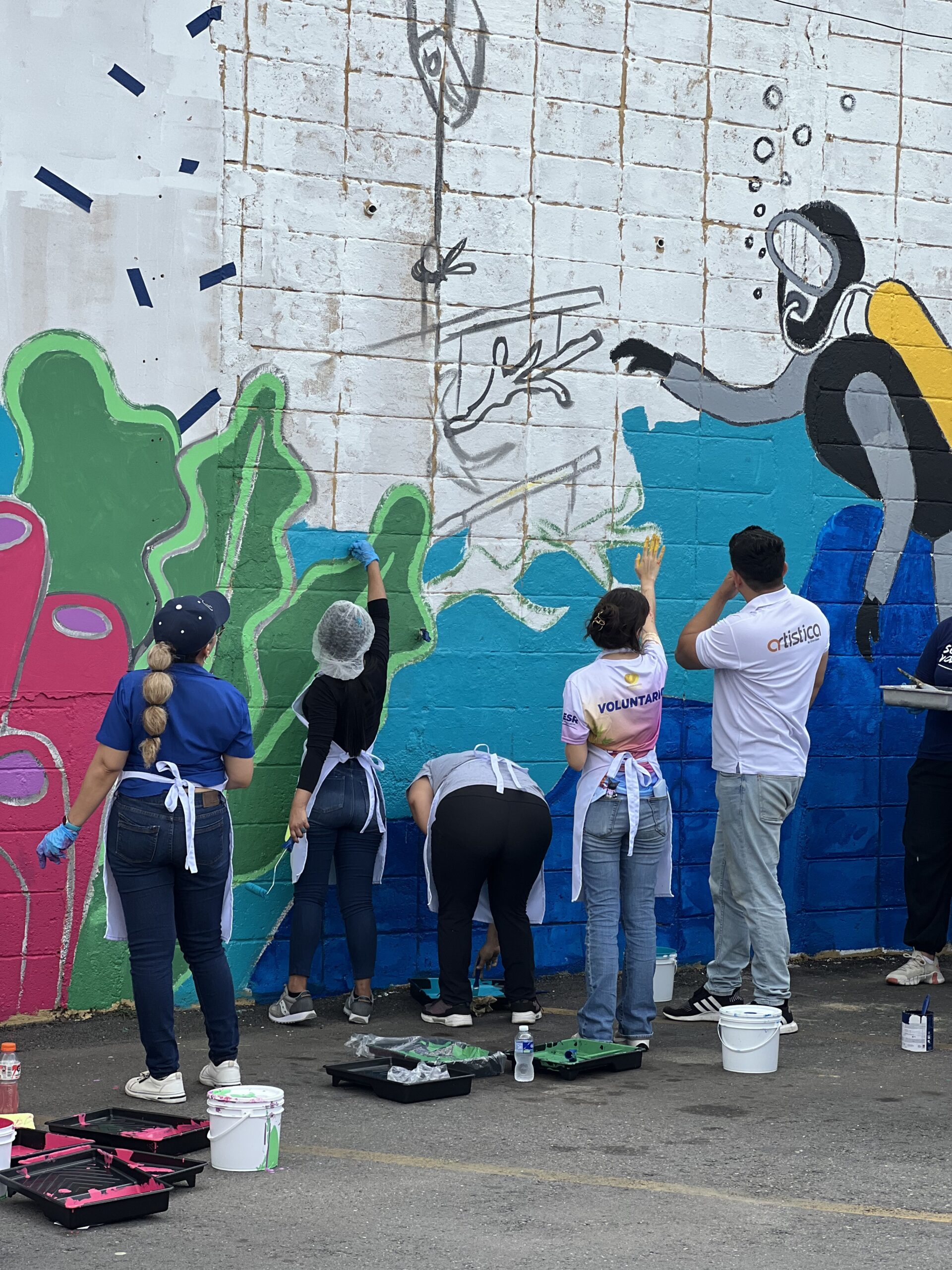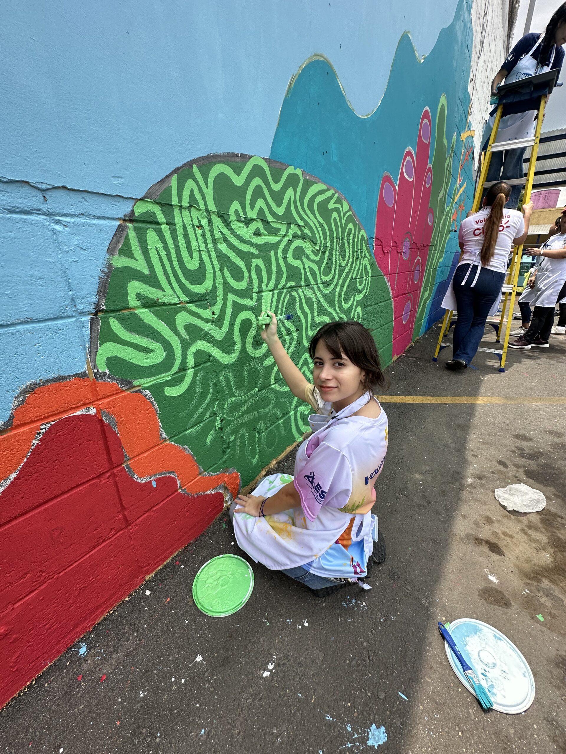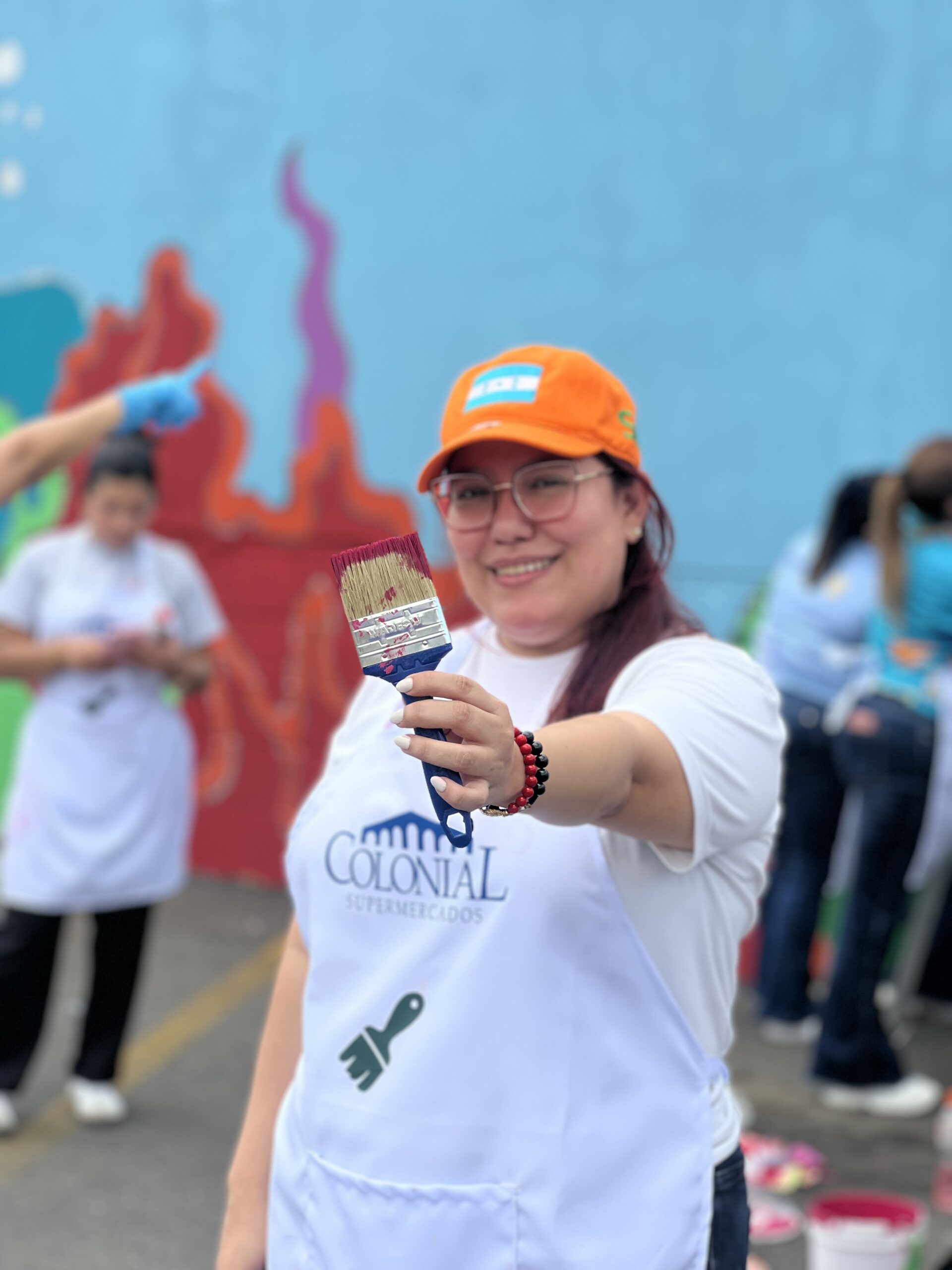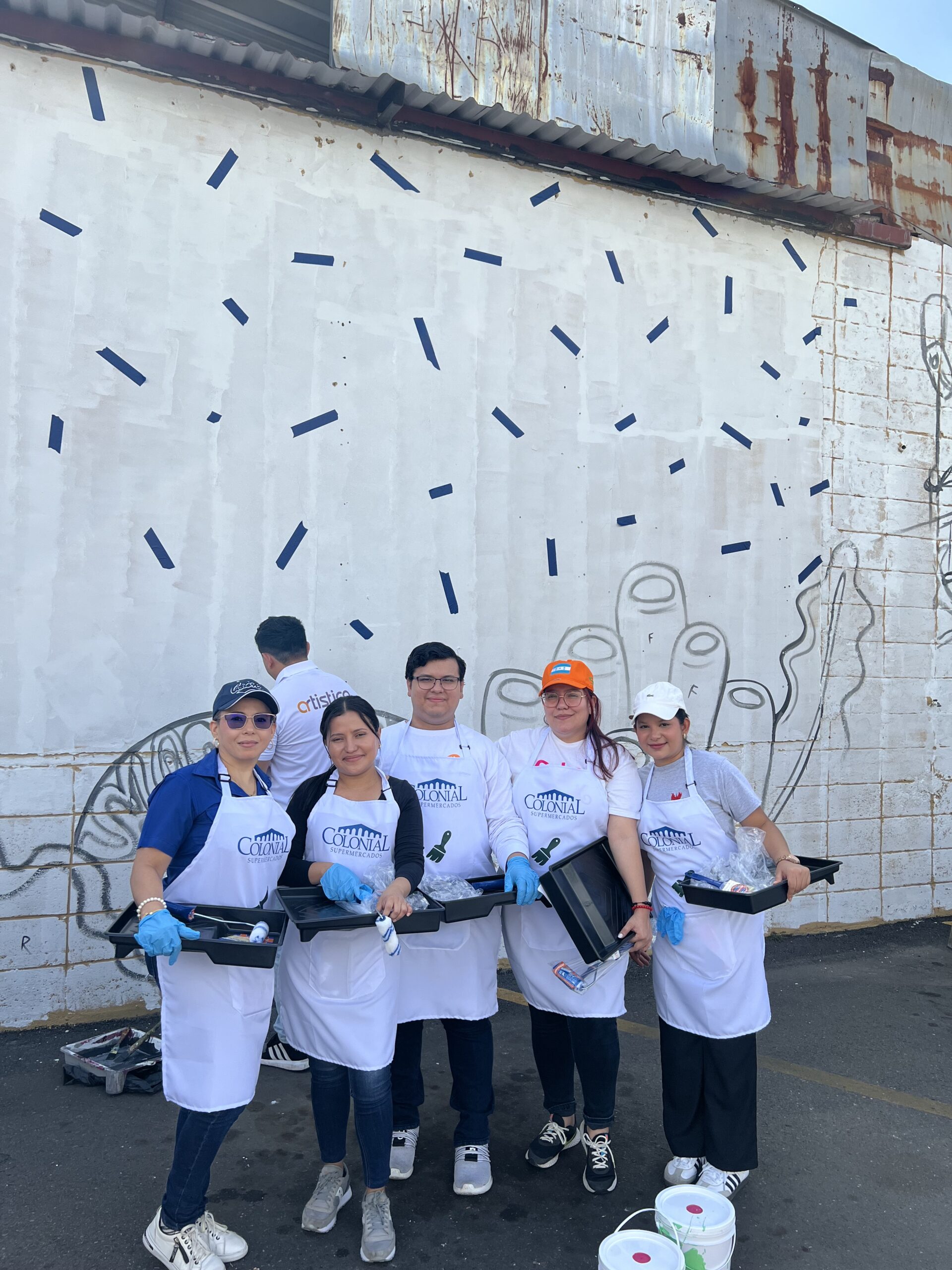 Luego, los participantes se trasladaron al estacionamiento de Supemercado sucursal #1 avenida circunvalación, donde se pintó un mural con temática ambiental, como símbolo del compromiso con la educación ambiental y el voluntariado. La jornada incluyó un coffee break de bienvenida, espacio de integración y un almuerzo con los participantes.