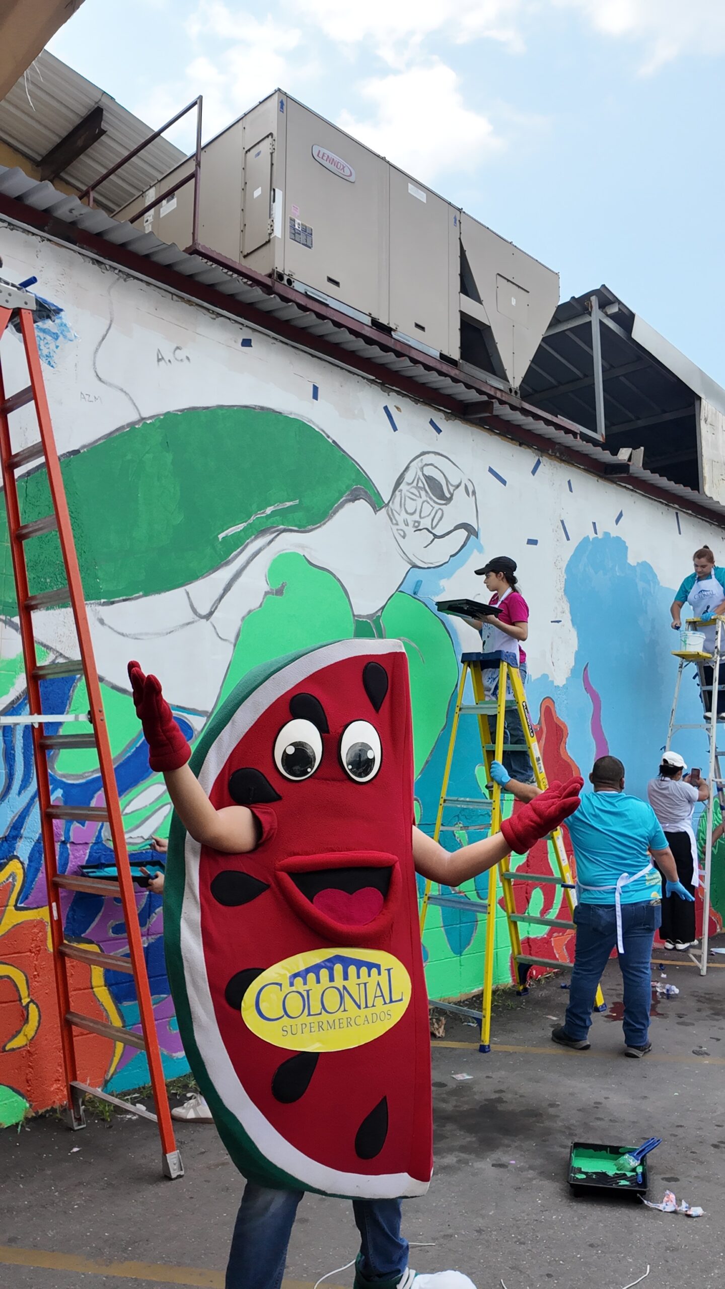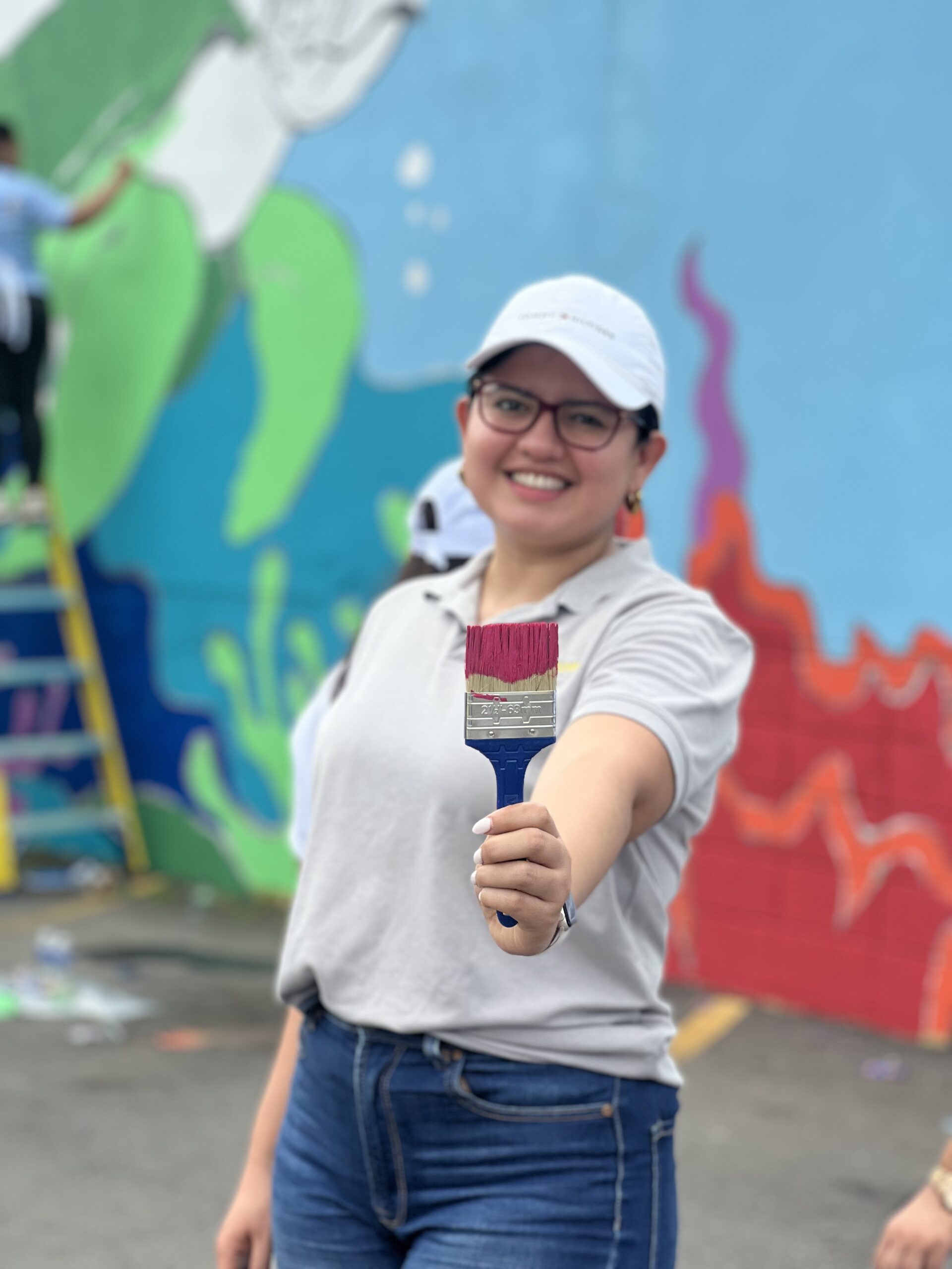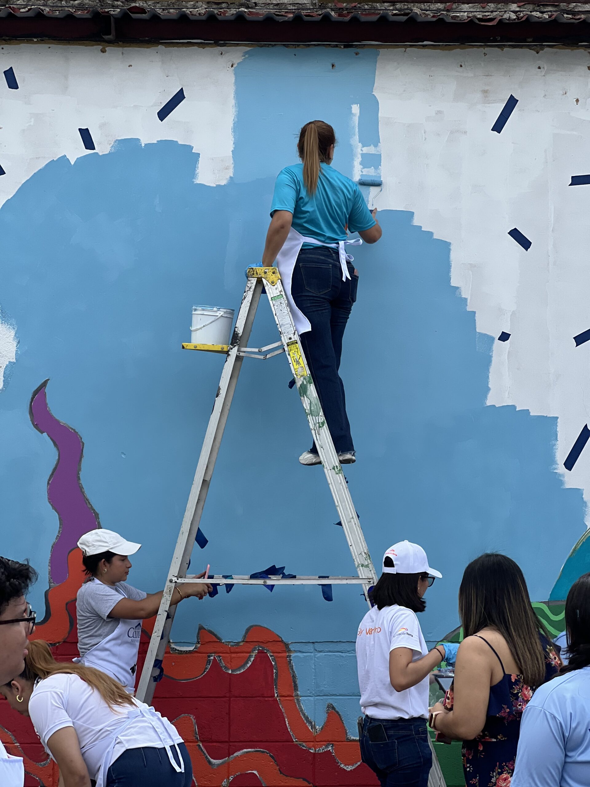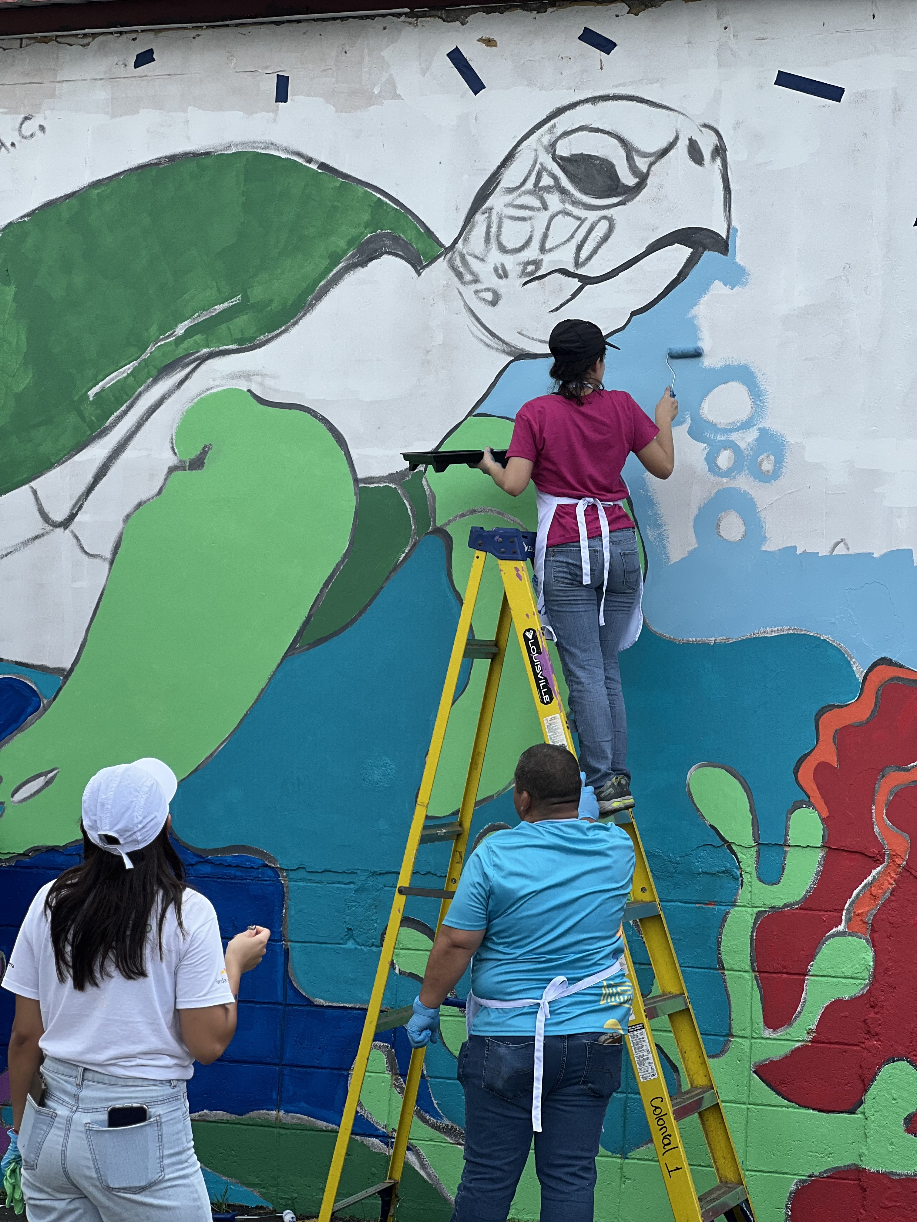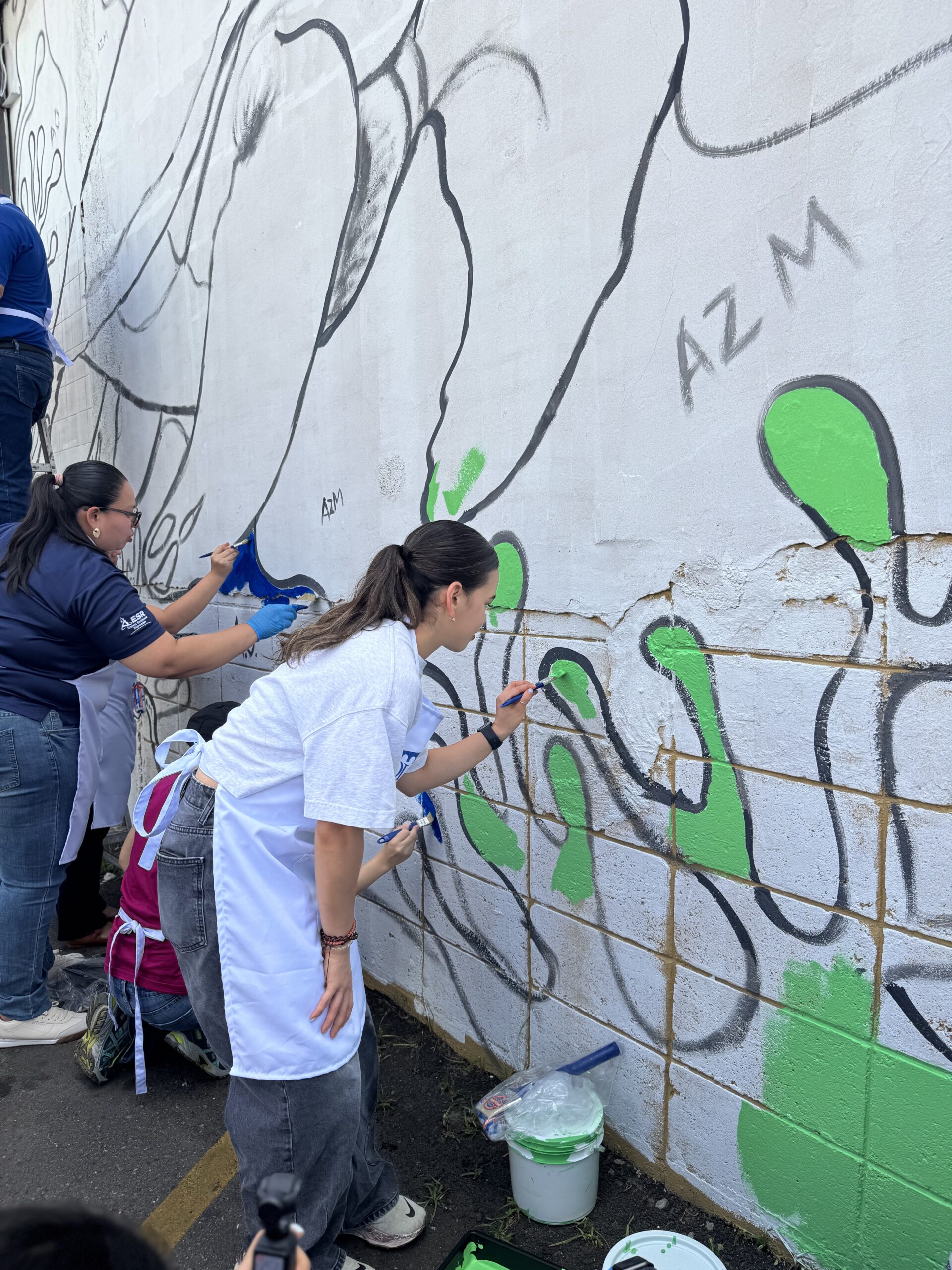 Luego, los participantes se trasladaron al estacionamiento de Supemercado sucursal #1 avenida circunvalación, donde se pintó un mural con temática ambiental, como símbolo del compromiso con la educación ambiental y el voluntariado. La jornada incluyó un coffee break de bienvenida, espacio de integración y un almuerzo con los participantes.