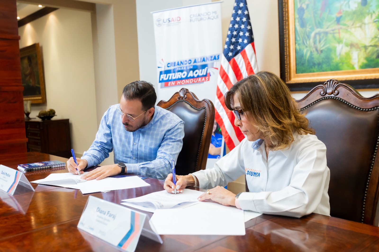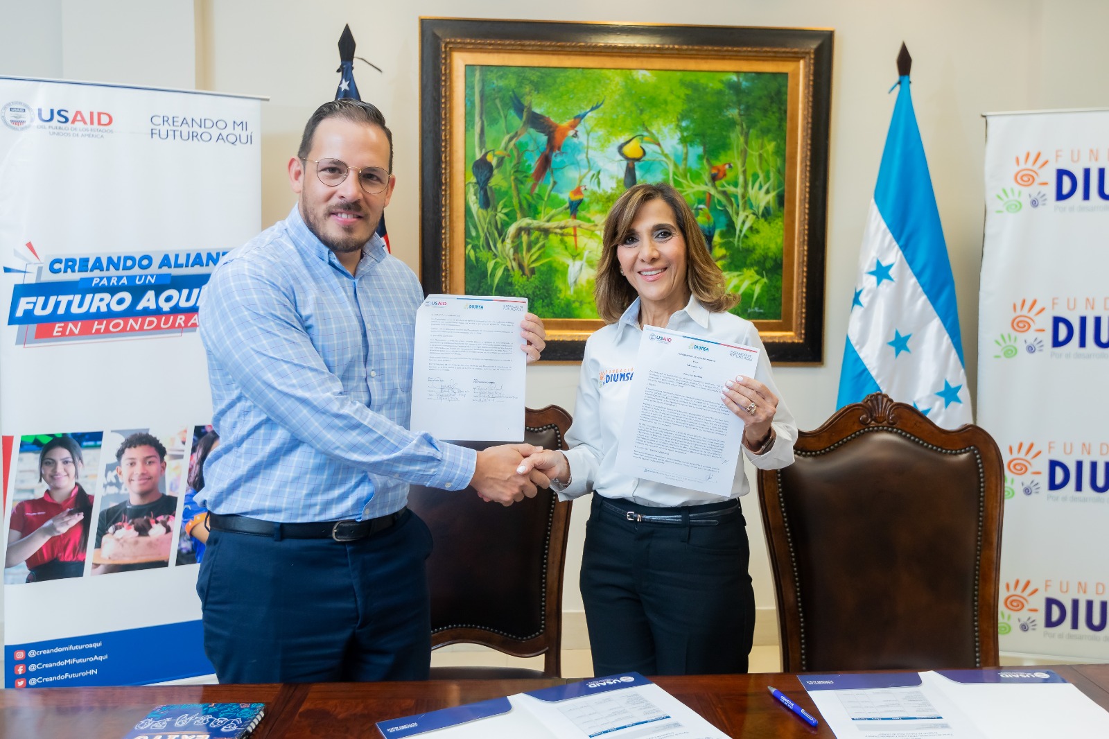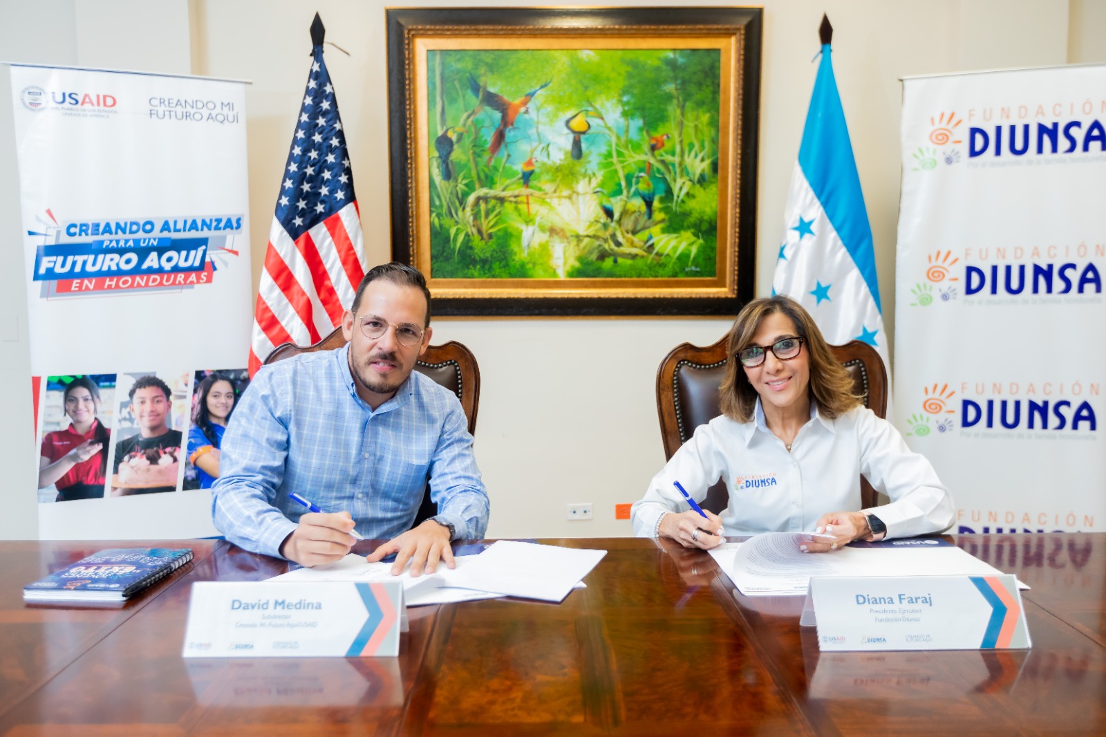 San Pedro Sula, Cortés. 18 de octubre de 2023. La Agencia de los Estados Unidos para el Desarrollo Internacional (USAID) a través de su proyecto “Creando Mi Futuro Aquí” reafirma su relación con Fundación Diunsa mediante la firma de un memorándum de entendimiento. En total, gracias a este acuerdo, se beneficiarán aproximadamente 2000 jóvenes en San Pedro Sula, Tegucigalpa y La Ceiba a lo largo de la vida del proyecto.